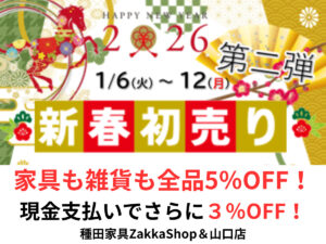 家具と雑貨がALL5%OFF 初売り第二弾 12日まで... 2026.01.05