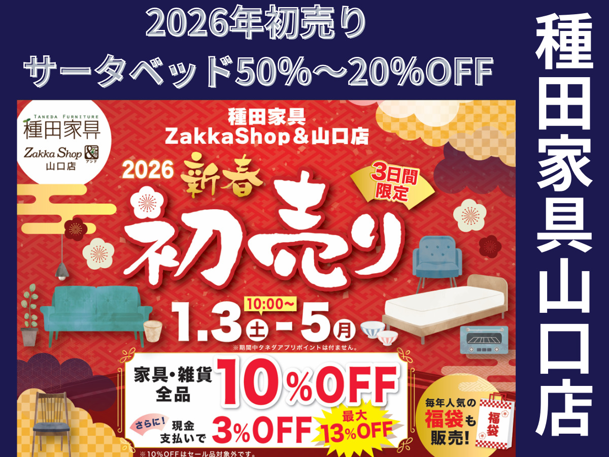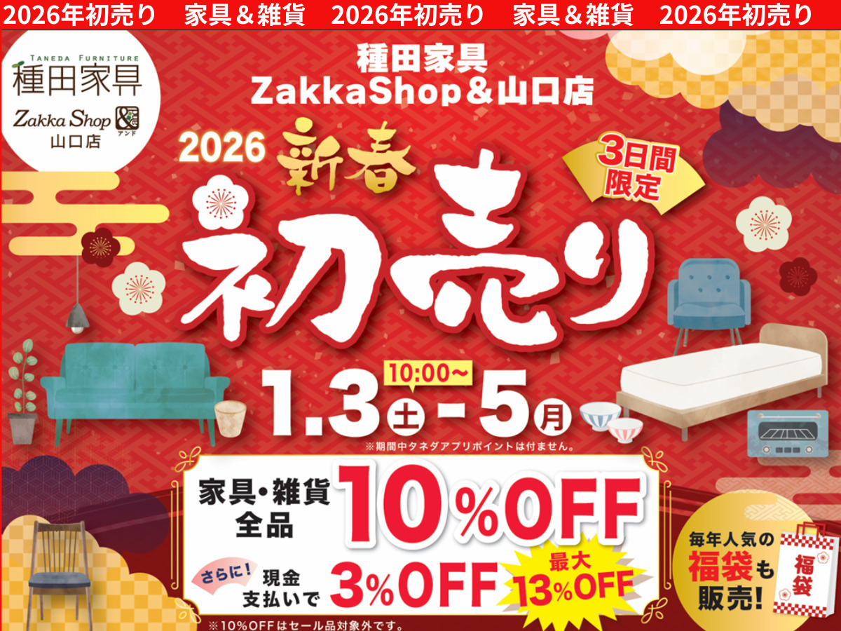 2026年 家具と雑貨の初売りALL10%OFF【山口店限定】