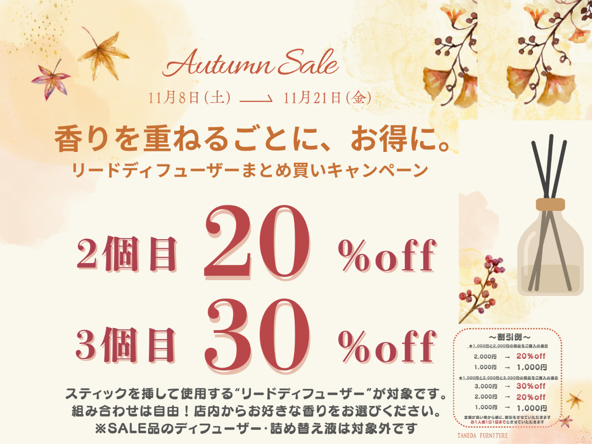 秋の香りを楽しむセール開催!まとめ買いでお得に!
